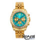 Caja de acero con circonitas y correa de acero bañado en oro y acetato.